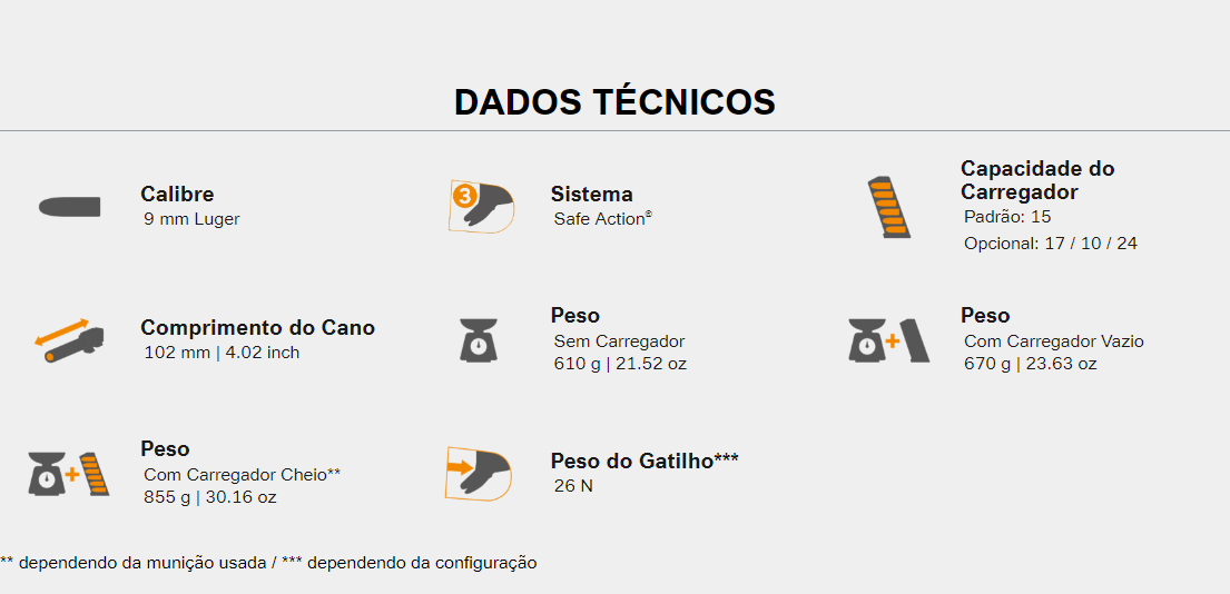A pistola GLOCK 19 Gen5 em 9mm é ideal para um papel mais versátil devido às suas dimensões reduzidas. O novo design da estrutura sem ranhuras para os dedos ainda permite personalizar instantaneamente sua empunhadura para acomodar qualquer tamanho de mão, montando as diferentes alças traseiras. A captura reversível do magazine e a alavanca de parada deslizante ambidestra o tornam ideal para atiradores destros e canhotos. O riflin e a coroa do cano foram ligeiramente modificados para aumentar a precisão.
